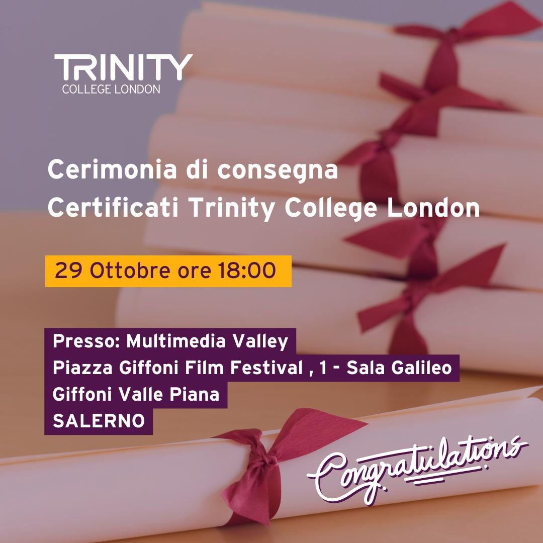 Si comunica che la Cerimonia di consegna dei Certificati Cambridge – Dele – Delf – Trinity si terrà mercoledì 29 Ottobre 2025, alle ore 18:00, presso la Sala Galileo della Multimedia Valley di Giffoni Valle Piana (SA).
