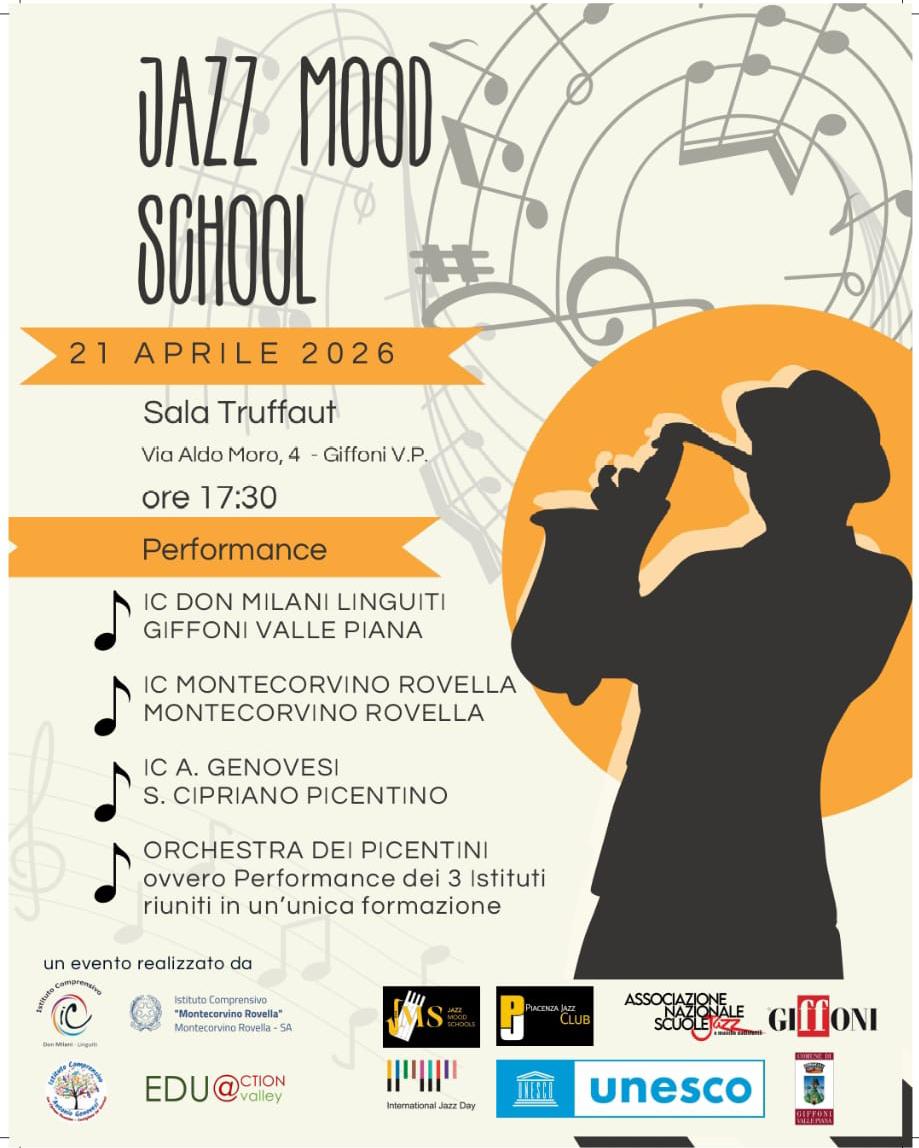 L’Istituto Comprensivo Don Milani Linguiti di Giffoni Valle Piana parteciperà all’evento “Jazz Mood School”, in programma il 21 aprile 2026, alle ore 17:30, presso la Sala Truffaut, in Via Aldo Moro, 4 – Giffoni Valle Piana.